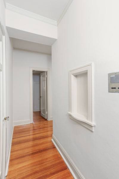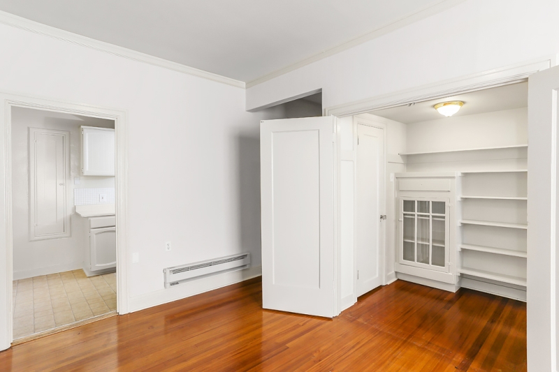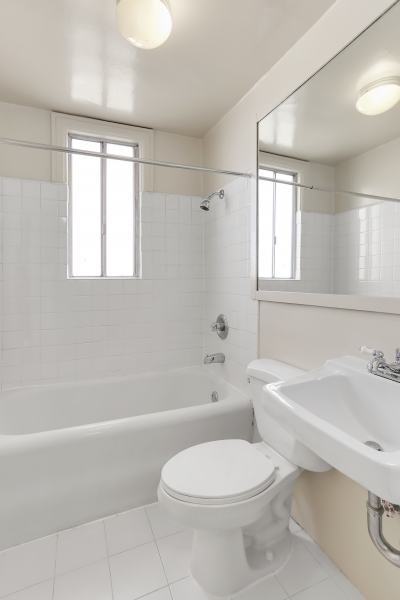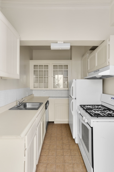 This studio comes with hardwood floors, an eat-in kitchen with a gas stove and dishwasher, a tiled bathroom with a shower/bath combo, and 2 walk-in closets. The unit faces the back of the building but has beautiful city views with lots of natural lights. Built on the corner of Sacramento Street and Octavia Street, this 5-story building is located directly across from Lafayette Park. The majority of these hardwood floor units feature either views of the park or a southern facing city view. Equipped with an intercom system, elevator and a coin-operated laundry facility. Pictures are of a typical unit.